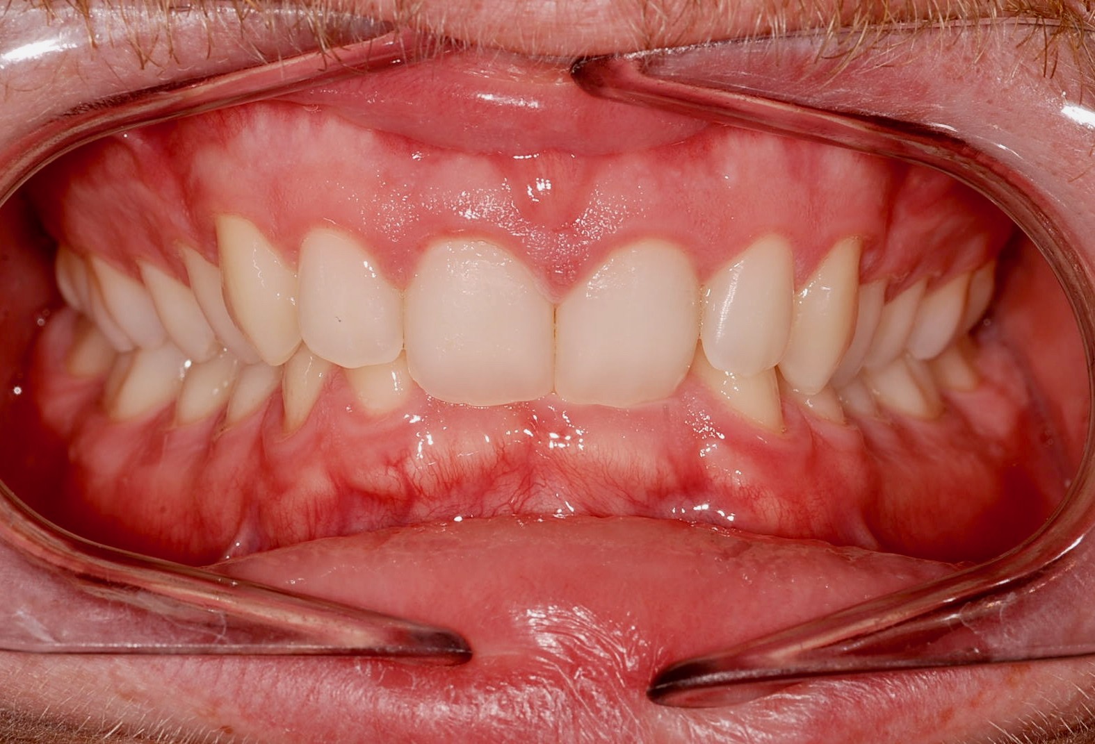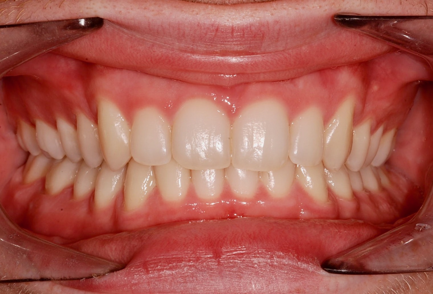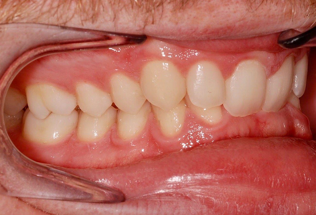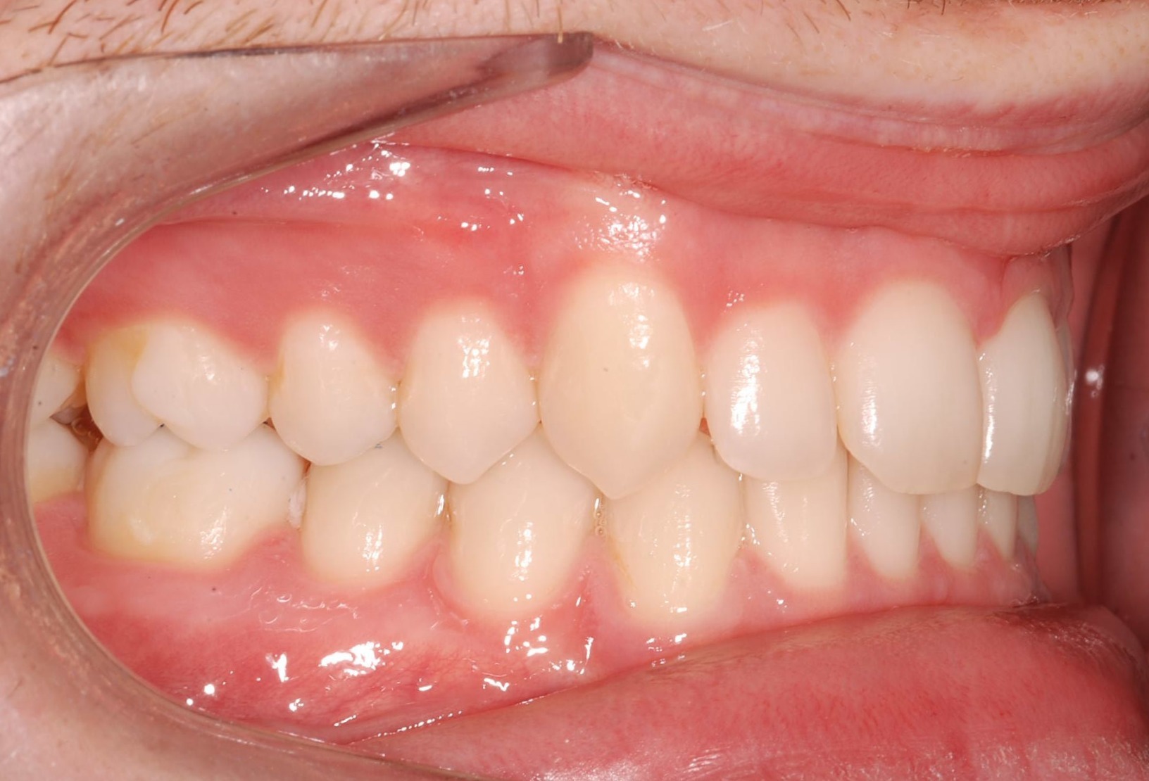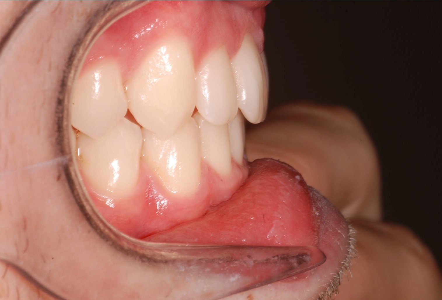 The aim of this article is to illustrate a case report treated with customized lingual brackets in association with a simple vestibular device.
